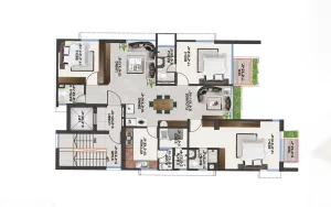 This 2050 sft apartment in Bashundhara offers comfortable family living with 3 bedrooms, 3 well-fitted bathrooms, and 2 balconies. The thoughtfully designed layout includes built-in bedroom cabinets, a dining room cabinet, and a dedicated TV unit space, along with a welcoming drawing room and a bright dining area.